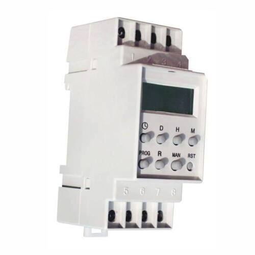 Timer digital com temporizador, permite programar até 8 eventos liga/desliga por dia intervalo mínimo de 1 minuto . Possui display de Lcd e bateria interna que mantêm a programação e o relógio na ausência de energia. Fácil instalação, a conexão é feita por fios e cabos e pode ser fixado em trilhos Din, pode ser utilizado em aquecedores, controladoras, motores, piscinas, painéis luminosos, etc. Ficha Técnica: - Cor: Branco - Tensão: 220V - Programações Disponíveis: 56 programações 8 por dia - Carga máxima em 220V: 3500 Watts resistiva 16A / 1100 Watts indutiva 5A ; - Dimensões: 8,5 x 3,5 x 6,0cm Instalação: - Basta coloca-lo na tomada Consulte o manual online para mais detalhes: Manual DNI 6621 Ean: 7897126802075