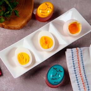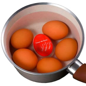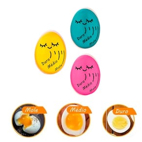 - Para utilizá-lo, basta colocá-lo junto aos ovos que serão cozidos. Quando a água começar a ferver, a cor do centro do timer começará a diminuir, passando pelos pontos marcados: mole, médio e duro. Estes pontos indicam o estágio de cozimento dos ovos, ou seja, basta você escolher qual o ponto de seu ovo e desligar o fogo quando a cor o timer passar por ele. Por ser em resina atóxica, o timer suporta tranquilamente altas temperaturas além de ser extremamente fácil de limpar e armazenar. Por fim, o timer para ovos é um item indispensável para a sua cozinha, garantindo um cozimento certo!