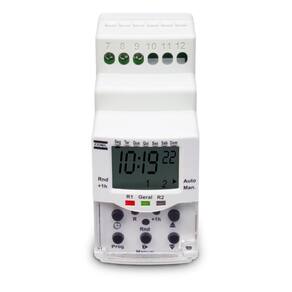 - Alimentação: 100 a 240 Vca. - BWT40HR 1 saída relé SPDT 16 A 250 Vca. - Acionamento manual/automático da s saída s . - LED para indicação do estado do s relé s de saída. - LED para indicação do instrumento alimentado. - Função de horário de verão. - Função randômica. - Caixa em ABS V0, 35 x 90 mm, padrão disjuntor, com fixação por trilho DIN 35 mm. - 40 memórias para programação 20 liga + 20 desliga ou 40 programas de pulso com ajuste de 1 a 59 seg sirene .