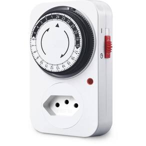 Timer analógico = é um relógio de tomada ou quadro de energia que você gira o botão e programa os horários. Não é digital, é de ponteiro mesmo. 10a = aguenta até 10 amperes de corrente elétrica. Pra coisas de baixa potência tá tranquilo como iluminação, ventiladores, etc. . 2p + T = quer dizer: 2p = Dois polos Fase e neutro. Ou seja, ele desliga/aciona os dois fios principais de energia. +t = mais Terra Tem um borne terminal também pro fio terra. Isso é importante pra segurança, principalmente em instalações que exigem aterramento. Marca: Não Informado