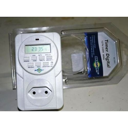Novo padrão de tomada e plugue - Este aparelho é bivolt, operando em 127V ou 220V automaticamente - Utilize-o com utensílios em 127V e 1.270W ou em 220V e 2.200W de potência - Economize energia elétrica - Liga e desliga automaticamente seus eletrodomésticos na hora programada. - Pode ser utilizado em iluminação de aquários, jardins, fachadas luminosas, abajures, TVs, ventiladores, ares-condicionados, sistemas elétricos de piscinas, entre outras aplicações. - Programação simples, rápida e fácil. - 16 programações liga e desliga para o mesmo dia. - 9 opções de calendário: diariamente, 1 vez por semana, apenas dias úteis, apenas finais de semana, segunda à sábado, dias alternados e 3 dias consecutivos.