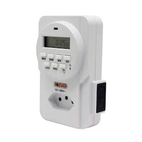 O Programador de Tempo Digital permite automatizar o funcionamento de equipamentos e sistemas elétricos. É fácil de programar e pode ser ligado diretamente à tomada elétrica. Utilizado para automatizar sistemas de iluminação, ventilação e aparelhos domésticos, como bebedouros e cafeteiras. Opera em frequência de operação: 50/60 Hz.