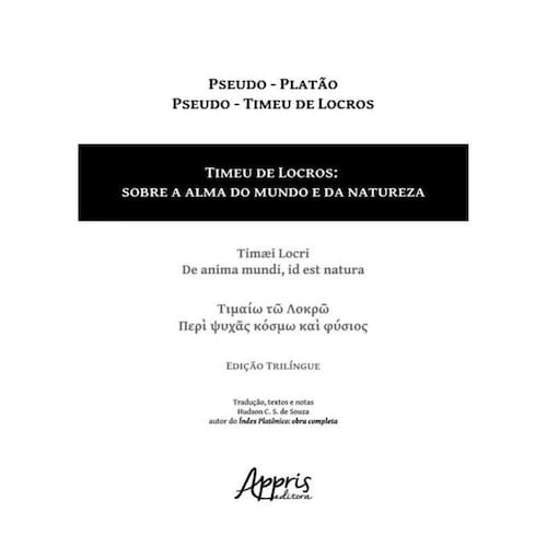 Timeu de Locros era, até então, a única obra do Corpus Platonicum ainda sem tradução para o português. De autoria controversa, o tratado sobre cosmologia foi atribuído tanto ao próprio Timeu de Locros (filósofo e matemático pitagórico do séc. V a.C.) como ao notório filósofo grego Platão (séc. IV a.C.), uma vez que Timeu de Locros foi personagem em dois de seus diálogos, inclusive, um deles intitulado com o seu nome: Timeu. As querelas acerca da autenticidade se prolongaram até o séc. XVII, quando então a obra foi considerada definitivamente apócrifa para ambos os autores, como também, possivelmente, nem mesmo escrita por um filósofo da antiguidade. Estudos posteriores situaram o trabalho como supostamente originário da Alexandria, redigido entre I a.C. e I d.C. Assim, tão logo considerada espúria, a obra foi progressivamente sendo "esquecida", até não mais integrar, desde o início do século XX, as "obras completas" de Platão. O escrito representa uma retomada da cosmologia platônica e pós-platônica, inclusive com influência aristotélica, cujo interesse é partilhado tanto por estudiosos como interessados em geral em filosofia, cosmologia e religião antiga.