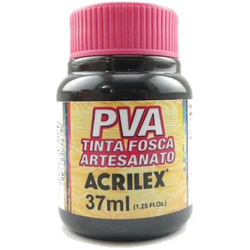 Pva tinta fosca para artesanato características a base de látex p.v.a. secagem rápida. acabamento fosco. pronta para uso modo de usar pode ser aplicada com pincel, esponja ou rolinho de espuma. auxiliares diluente: água. gel para matizar, médium acrílico, verniz acrílico, lacas, acrilfix e base acrílica para artesanato. uso específico ideal para trabalhos artesanais sobre madeira, gesso, mdf, cerâmica, cortiça, isopor, papel, palha e pet preparado antes com primer acrilex . Ean: 7891153032160