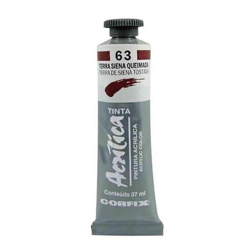 Tinta Acrilica Corfix 63 Terra Siena Queimada 37MlA tinta acrílica corfix é elaborada com matérias-primas selecionadas que lhe confere grande desempenho. Os pigmentos utilizados são de ótima solidez à luz e resistentes a agentes atmosféricos. A combinação de resinas acrílicas, solúveis em água, confere à tinta acrílica, após secagem, uma película elástica, brilhante e extremamente resistente aos vários suportes. A preservação contra microrganismos tanto da tinta quanto da obra já pronta, é feita através de fungicidas e bactericidas criteriosamente selecionados. A tinta acrílica corfix é solúvel em água e suas cores são miscíveis entre si. tem secagem rápida. Diluída em água, obtém-se efeito aquarelado possibilitando também sua utilização em aerógrafia. É um produto que apresenta uma consistência suave e amanteigada que permite técnicas com utilização de pincel ou espátulas. A tinta acrílica corfix pode ser aplicada em vários substratos: telas, cartão telado, papel, paredes de concreto e praticamente em qualquer superfície não oleosa.Número da Cor:63Grupo: 2Transparência: OpacoResistência à Luz: ExcelentePigmentos: PR101