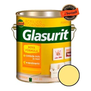 Tinta Acrílica Econômica Glasurit 3,6L Amarelo Canario A tinta acrílica Glasurit e a linha econômica da Suvinil na cor Fosco Trevo da Sorte, é indicado para pintura em ambientes internos de superfícies de reboco, massa acrílica, texturas, concreto, fibrocimento, massa corrida e gesso. A tinta Acrílica Glasurit 3,6L tem um rendimento máximo de 56M/demão sendo que, com a diluição correta são necessárias de 2 a 4 demãos para um excelente resultado. lembrando que após a primeira demão recomenda-se que espere 4 horas para dar a 2 demão de tinta na parede Para o preparo da tinta para primeira pintura e repintura de paredes, misturar 5 partes de tinta com 1 parte de água 20% de diluição . agite bem o produto antes e depois da diluição até a sua perfeita mistura