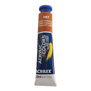 Tinta acrílica tela 20ml - cobre iridescente Descrição Tinta acrílica para telas e trabalhos artísticos em cartão, papelão ou outras superfícies preparadas com base acrílica para artesanato, gesso acrílico ou pasta para modelagem acrilex.