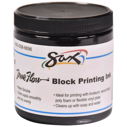 - A tinta de impressão Sax True Flow Block é ousada, brilhante, se aplica suavemente e seca uniformemente. A fórmula não tóxica à base de água limpa com água e sabão para conveniência na sala de aula. Adequado para linóleo, bloco de madeira, placa de vinil flexível e poliestireno. Frasco de 8 onças.