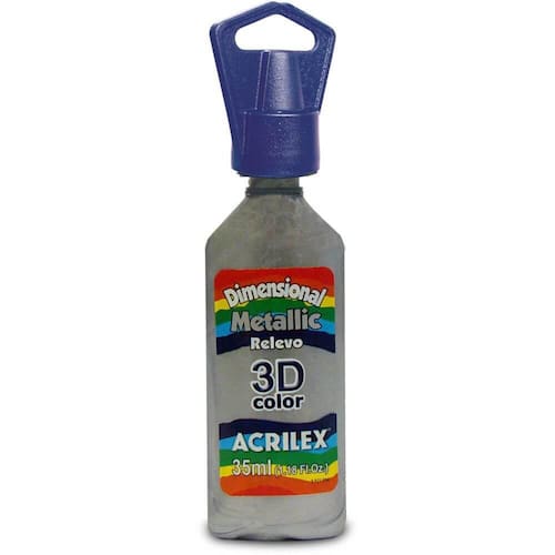 Tinta Dim Relevo 3D Metallic 12312 35Ml Prata 533 Acrilex - Preto