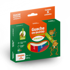 O Guache em Bastão - Caixa com 6 Cores Leo&Leo chegou para mostrar que a alegria de pintar com guache não precisa virar um drama na hora da limpeza. É a solução perfeita para as crianças soltarem a imaginação, sem fazer aquela bagunça com as tintas. Seu design é inteligente e possui um mecanismo rosqueável similar ao de uma cola bastão, favorecendo a organização e aumentando a durabilidade do produto, já que evita o desperdício. O segredo deste gauche é o aspecto mais rígido da tinta, semelhante ao giz de cera.