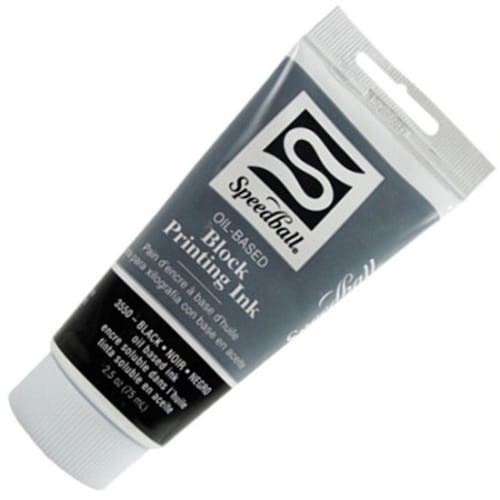 Tinta Speedball utilizada para xilogravura ou linoleogravura. Importada dos Estados Unidos, a tinta Speedball a óleo é uma das mais conhecidas entre os artistas. A tinta a óleo para xilogravura confere uma profundidade as cores. Antes de aplicar a tinta com o rolo (cilindro) de borracha/gelatina/couro, prepara-se à tinta sobre um vidro, esticando-a com uma espátula de aço, afim de torna-la maleável (plástica). Passa-se o rolo sobre a tinta "esticada", de modo a uniformiza-la tanto no vidro quando no rolo. Seguem-se várias passadas de rolo na matriz, até que adquira homogeneidade sem brilho excessivo.