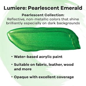 Jacquard Tinta de tecido Lumiere 227 g esmeralda perolada - tinta metálica para tecido, couro, tela, papel e madeira - Tinta acrílica metálica leve - Tintas acrílicas metálicas vibrantes e resistentes