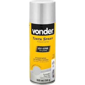 Cod. Fornecedor: 6250350001Marca: Vonder Conteúdo da embalagem: 1 Tinta em spray com 350 ml / 250 g.Destaques e diferenciais: Ótima resistência às intempéries e secagem rápida. Proporciona excelente acabamento, poder de cobertura e alto rendimento.Aplicações e dicas de uso: Indicada para pinturas em geral, uso interno e externo. Tinta base acrílica. legal: 90 diasQualificação TécnicaCor: Alumínio Acabamento da tinta: Brilhante Tipo de base da tinta: Base acrílica Volume ml/g : 350 ml / 250 g Massa aproximada peso kg : 0,250 kg