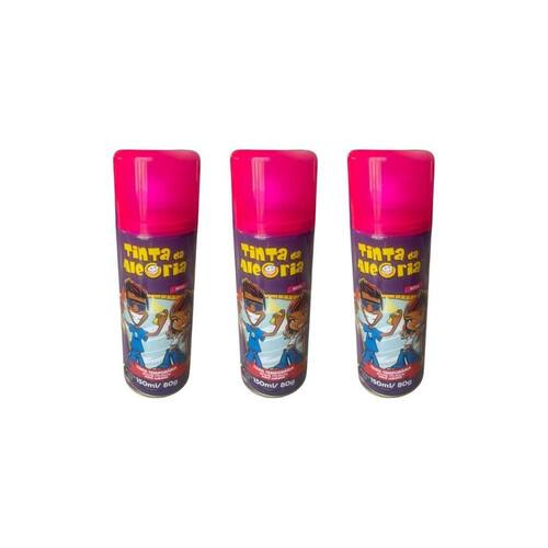 Esse kit contém: 3 tinta spray da alegria 150ml rosa
