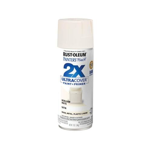 Painter's Touch 2X Ultra Cover, 12 onças, branca Satin Heirloom - Ideal para uso em superfícies internas/externas, incluindo madeira, plástico, gesso, metal, alvenaria e cerâmica não vidrada - A