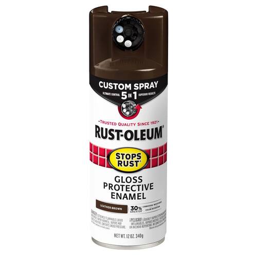 Rust-Oleum 376892 Stops Rust Tinta spray personalizada 5 em 1, 12 onças, couro brilhante marrom
