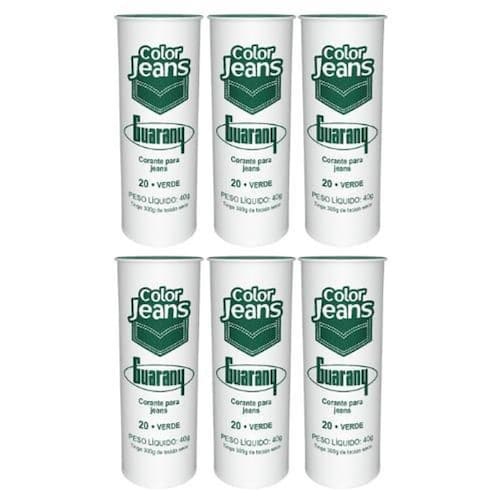 Lembre-se que um tubete é suficiente para 300 gramas de tecido, ou seja, divida o peso da roupa em gramas por 300 e obtenha quantos tubetes serão necessários. Exemplo: 900/300 = 3 tubetes Biquini - 100g - 1/3 Calça Adulto - 700g - 2 e 1/3 Calça Jeans - 800g - 2 e 2/3 Calça Jeans Infantil - 450g - 1 e 1/2 Camiseta 1/2 Manga - 100g - 1/3 Camiseta Regata - 80g - 1/4 Fronha - 180g - 2/3 Lençol Casal - 500g - 1 e 2/3 Lençol Solteiro - 300g - 1 Maiô - 200g - 2/3 Short - 100g - 1/3 Sunga - 50g - 1/6 Toalha Banho - 800g - 2 e 2/3 Toalha Rosto - 180g -2/3 Especial para tingir tecidos como algodão, linho, rami, , juta, rayon e viscose. Instruções de uso: 1 Dissolva o Colorjeans em água fervente. 2 Misture o Colorjeans dissolvido em um recipiente com água quente o suficiente para cobrir a peça a ser tingida. 3 Lave a peça e, ainda úmida, mergulhe no banho de tingimento, mexendo sempre por 30 minutos. Mantenha sob fervura. 4 Retire a peça do banho e enxágue bem em água corrente. 5 Coloque no Fixacor por 30 minutos, seguindo as instruçõesda embalagem. Indicação: Recuperação de roupas, tie dye, customização, artesanato, etc. Peso líquido: 40g Quantidade de tecido seco: 300g Ítens do pacote: 06 Color Jeans Verde 40g;