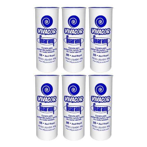 Lembre-se que um tubete é suficiente para 300 gramas de tecido, ou seja, divida o peso da roupa em gramas por 300 e obtenha quantos tubetes serão necessários. Exemplo: 900/300 = 3 tubetes Biquini - 100g - 1/3 Calça Adulto - 700g - 2 e 1/3 Calça Jeans - 800g - 2 e 2/3 Calça Jeans Infantil - 450g - 1 e 1/2 Camiseta 1/2 Manga - 100g - 1/3 Camiseta Regata - 80g - 1/4 Fronha - 180g - 2/3 Lençol Casal - 500g - 1 e 2/3 Lençol Solteiro - 300g - 1 Maiô - 200g - 2/3 Short - 100g - 1/3 Sunga - 50g - 1/6 Toalha Banho - 800g - 2 e 2/3 Toalha Rosto - 180g -2/3 Especial para tingir tecidos como poliamida Nylon , lycra, lã e seda naturais. Instruções de uso: 1 Dissolva o Vivacor em água fervente. 2 Misture o Vivacor dissolvido em um recipiente com água quente o suficiente para cobrir a peça a ser tingida. 3 Lave a peça e, ainda úmida, mergulhe no banho de tingimento, mexendo sempre por 30 minutos. Mantenha sob fervura. 4 Retire a peça do banho e enxágue bem em água corrente. 5 Coloque no Fixacor por 30 minutos, seguindo as instruçõesda embalagem. Indicação: Recuperação de roupas, tie dye, customização, artesanato, decoração, etc. Peso líquido: 40g Quantidade de tecido seco: 300g Itens do pacote: 06 Vivacor 40g Azul Royal; Marca: Não Informado