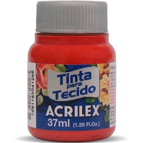Tinta para Tecido Acrilex Fosca 37ml. Tintas à base de resina acrílica, não tóxicas e solúveis em água. Prontas para uso. São resistentes a lavagens e todas as cores são miscíveis entre si. Sua aplicação pode ser feita com pincel ou esponja, e têm fixação a frio. São tintas desenvolvidas para tecidos de fibras naturais de algodão, não devendo ser utilizadas sobre tecidos sintéticos ou engomados. Lavar o tecido antes da pintura, para retirar os resíduos de goma. Após a pintura, aguarde 72 horas para lavagem. Para diluição, use o Diluente para Tinta Tecidos, indicado para diluir, retardar a secagem, fazer Técnicas de matizados e sombreados, mantendo a resistência às lavagens.