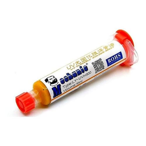 Tinta uv mascara uv mechanic uvh900 10cc seringa utilizado para proteger os vestígios pcb a partir de corrosão, umidade. Ele também é utilizado para reparação pcb após a soldagem, retrabalho. Especificações: