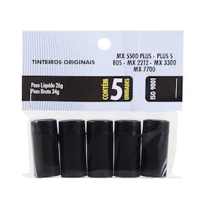 Características do produto: Marca: Fixxar Cor: Preto Nome do modelo: Blister Tinteiro MX 5500 - Plus, EOS, Plus S Contém 5 Unidades