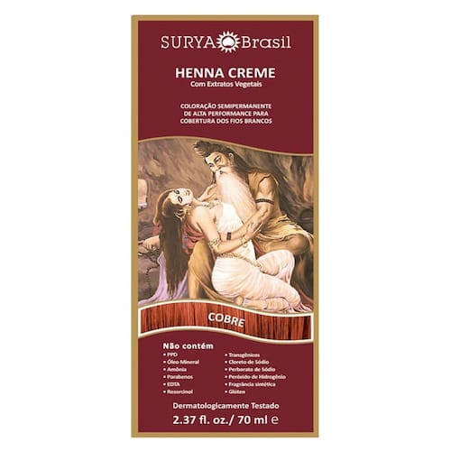 Todas as tonalidades da Henna Creme Surya Brasil contêm 15 extratos de ervas e frutas da Índia e da Amazônia, que condicionam e nutrem profundamente os fios. Sua nova fórmula conta com um quelante natural, um solvente sustentável extraído do milho e óleo de babaçu orgânico para deixar os cabelos mais macios e sedosos.