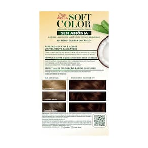 TINTURA CREME SOFT COLOR WELLA CAFÉ 477 Este Kit Contém: 1 Bisnaga de Coloração Extra Suave sem Amônia com Cera de Abelhas 35 g 1 Frasco Aplicador de Emulsão 70 ml 1 Sachê de condicionador com sistema