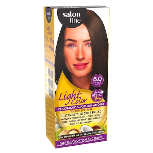 Para quem tem até 50% de cabelos brancos dispersos, a Tintura Light Color Salon Line é uma excelente opção, pois lhe proporcionará reflexos deixando um aspecto luminoso, mascarando os fios brancos suavemente.