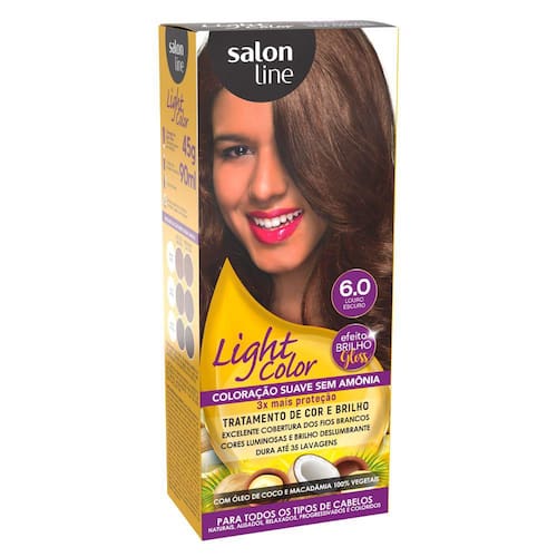 Para quem tem até 50% de cabelos brancos dispersos, a Tintura Light Color Salon Line é uma excelente opção, pois lhe proporcionará reflexos deixando um aspecto luminoso, mascarando os fios brancos suavemente.