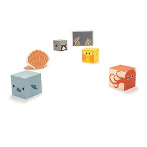 Baiacu. Golfinho. Polvo. Tubarão. Suas criaturas subaquáticas favoritas, ao quadrado. Feito de madeira de baixo sustentável do Centro-Oeste. Você também encontrará quatro ambientes de papel. Diversão ecológica. Misture, combine, salpique.