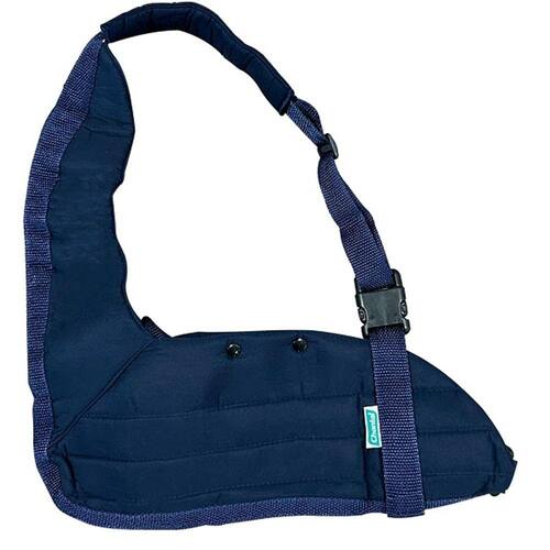 3. Coloque o braço na tipoia de forma que o cotovelo encaixe até o final.