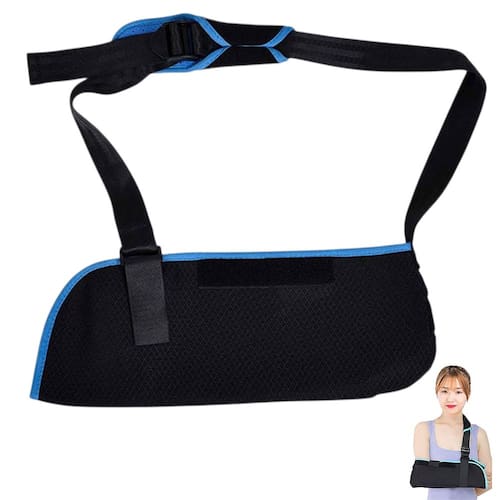 O tecido de malha durável, macio e flexível garante ventilação máxima, permitindo o uso da tipoia até durante o banho.