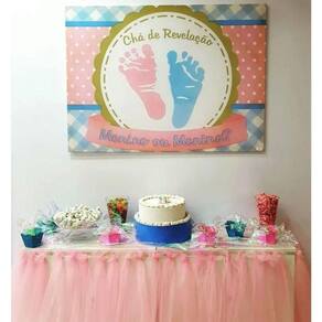 Solte a imaginação e crie ambientes encantadores para celebrar o momento especial da revelação do sexo do seu bebê. O Painel Chá Revelação TNT é perfeito para decorar a mesa principal, as mesas dos convidados, paredes e muito mais. Além disso, pode ser reaproveitado em outras ocasiões especiais.