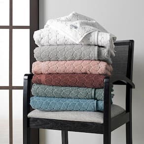 Da linha de Toalhas Premium Altenburg, o modelo Diamond está disponível nos tamanhos rosto, banho e banhão, com 6 opções de cores: branco, cinza, rosa, vermelho, verde e azul.