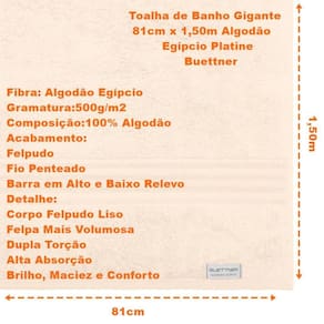 Conteúdo e Medidas: toalha Banhão Platine 01 Unidade 01 Toalha de Banhão (0,81cm x 1,50cm)