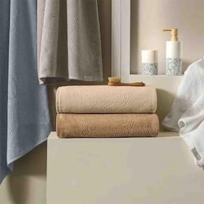 A Toalha Banhão Galbe, possui gramatura de 440g/m de 100% algodão com a frente navalhada e textura aveludada com ponto pipoca e contornos arabescos proporcionando um sensorial diferente sem perder a absorção e toque super macio além do verso 100% felpa. Possui também as tecnologias Unika e Softmax que dão maior volume e maciez. Em tamanho banhão de 86cm x 1,50m, a toalha Galbe abraça o corpo enquanto absorve a água tornando o momento pós banho mais prático e gostoso. O mesmo toque da Galbe também fica disponível nos tamanhos de toalha de banho e de rosto. Para que as toalhas mantenham suas propriedades por ainda mais tempo, seque em secadora ou quando secar á sombra sacuda para que as fibras se soltem e deixe bem esticada sobre o varal.