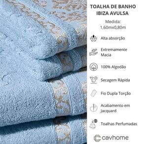 Descubra a combinação perfeita entre maciez, absorção e design exclusivo com a Toalha Ibiza. Inspirada na deslumbrante ilha de Ibiza, na Espanha, esta toalha traz um toque de elegância para o seu banheiro com seus delicados desenhos de arabescos e detalhes em fios dourados, que conferem um acabamento decorativo único.