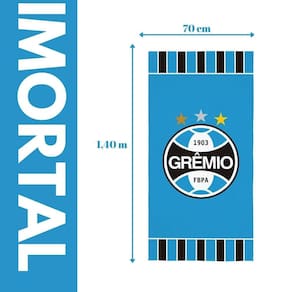 A toalha de banho aveludada do Grêmio ilustra com suas cores clássicas, o escudo do clube, com as faixas que simbolizam seu uniforme. Seu tecido conta com a qualidade da tecnologia transfer para ilustrar com ainda mais definição, cores e detalhes, além de ser aveludado, super macio e felpudo no verso para uma absorção ainda melhor. Trazendo o jeito Lepper de fazer com que todos os momentos sejam exclusivos, além de permitir que o seu clube esteja presente em um pós-banho muito mais estimado, mais alegre, mais Lepper!