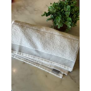 70CM X 1,40M-TOALHA BANHO SCALA - BRANCO As Toalhas Scala possuem design moderno, com listras contínuas em fio branco que percorrem o corpo das toalhas, criando um interessante contraste. Confeccionadas em puro algodão, as Toalhas possuem acabamento em Tumbler, que garante toque mais fofo e macio, com alto poder de absorção, tornando o seu banho um momento ainda mais aconchegante. Da linha de Toalhas Day by Day Altenburg, o modelo Scala está disponível nos tamanhos rosto, banho e um jogo de 5 peças, com 6 opções: bege, azul, verde, rosa, branco e cinza.