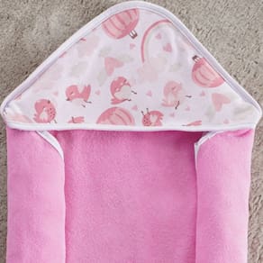 Toalha Capuz Bebê 70x70cm Malha Atoalhada Pássaro Rosa - Gramatura 230g/m², 85% Algodão, 15% Poliéster, Malha Atoalhada, Capuz Estampado