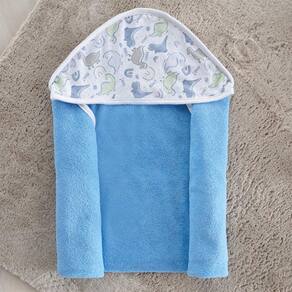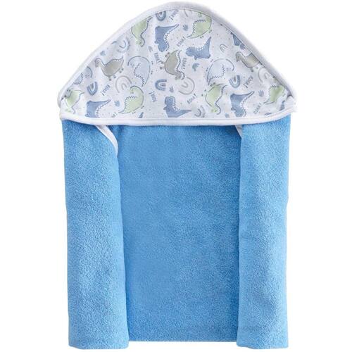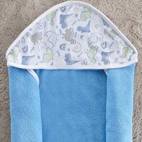 Toalha Capuz Bebê 70x70cm Malha Atoalhada Dino Azul - Gramatura 230g/m², 85% Algodão, 15% Poliéster, Malha Atoalhada, Capuz Estampado