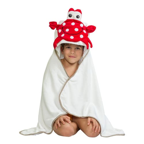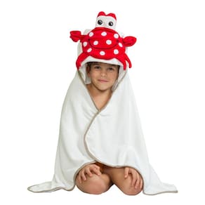 A Toalha Caranguejo Dani Lessa Branca é perfeita para tornar os momentos pós-banho, pós-piscina ou pós-praia ainda mais divertidos! Com um capuz em formato de caranguejo, essa toalha é super fofa e vai encantar os pequenos.