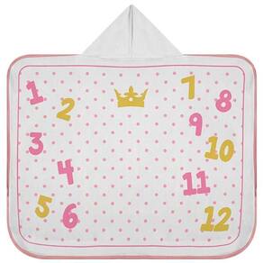 Conteúdo e Medidas: Toalha Capuz Estampada com Viés Mesversario - Menina - 01 Peça. Tamanho(0,70cm x 0,90cm)