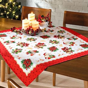 Marca: dohler Modelo: toalha centro de mesa Composição: 50% algodão 50% poliéster Gramatura: 170 gramas por metro quadrado Tamanho: 78 x 78 cm Estampa: natal Cor: vermelho / colorido