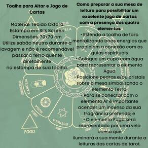 A Toalha Tecido Jogo de Cartas Cigana da Bialluz são ótimas para te auxiliar durante o jogo de cartas, por ser um elemento que proporciona alta elevação enérgica. Você também pode usar para decorar seu altar, com certeza ficara ainda mais lindo e com muita energia positiva. Nossa toalha possui altíssima qualidade na impressão com pontos de brilho e é confeccionada em tecido oxford que não amassa e tem longa durabilidade.