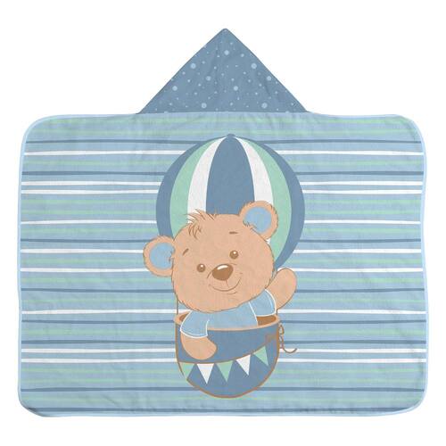 Toalha Com Capuz e Forro de Fralda 67 cm x 90 cm Bublim - Urso Balões