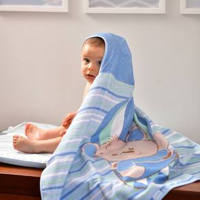 A toalha de banho para bebê é um item indispensável no enxoval do seu pequeno. Feita com tecido macio e absorvente, proporciona uma secagem suave e rápida após o banho, mantendo a pele delicada do bebê protegida e livre de irritações.