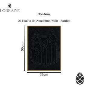 Especificações Técnicas: - Marca: Buettner - Time: Santos - Modelo: Toalha de Academia e Mão - Cor: Preto - Composição: 100% algodão - Dimensões: 33cm x 50cm - Estampa: Jacquard - Produto oficial e licenciado