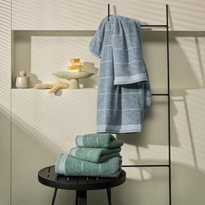 As Toalhas Scala possuem design moderno, com listras contínuas em fio branco que percorrem o corpo das toalhas, criando um interessante contraste.
