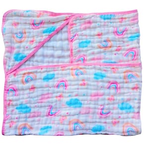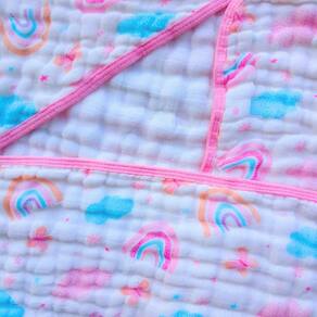 Produzida com 3 camadas de tecido fralda de algodão, é super absorvente, extra macia e respirável, proporcionando um toque suave na pele delicada do bebê.